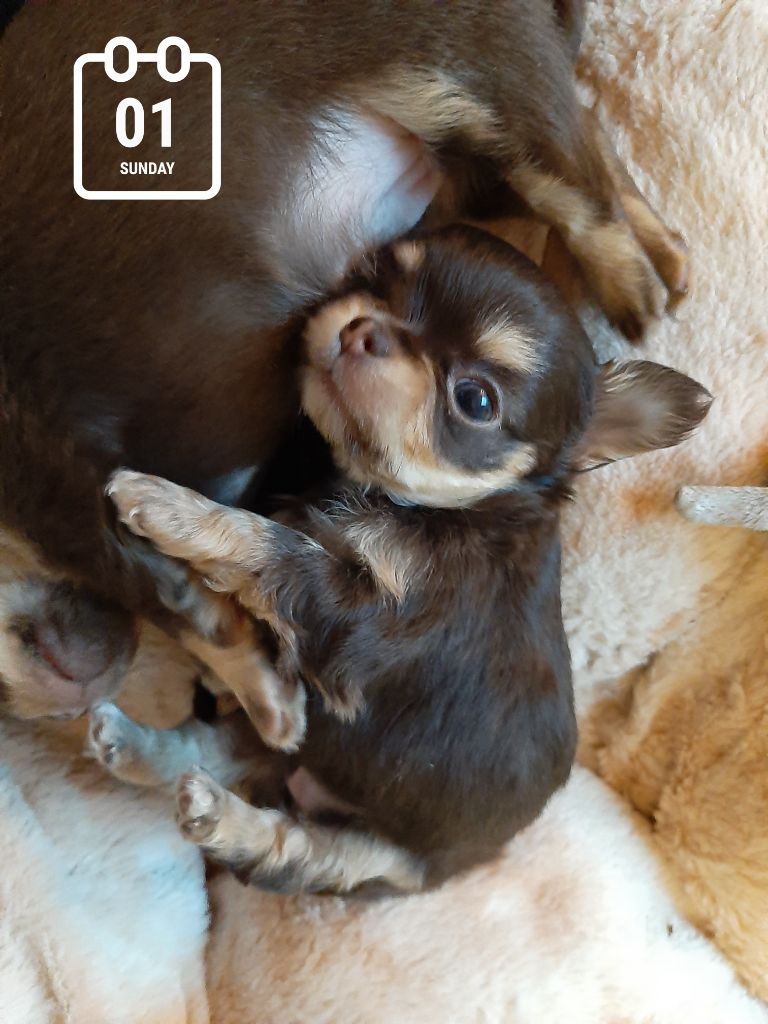 Jolie portée de trois chihuahuas à poils longs arrivée le 3 Octobre.